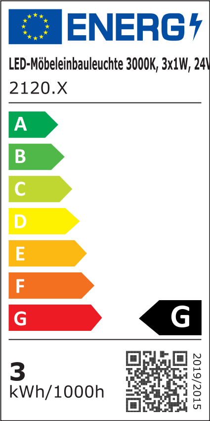 LED-Möbeleinbauleuchte 3000K, 45°, 3x 1W, 24V dimmbar mit PWM