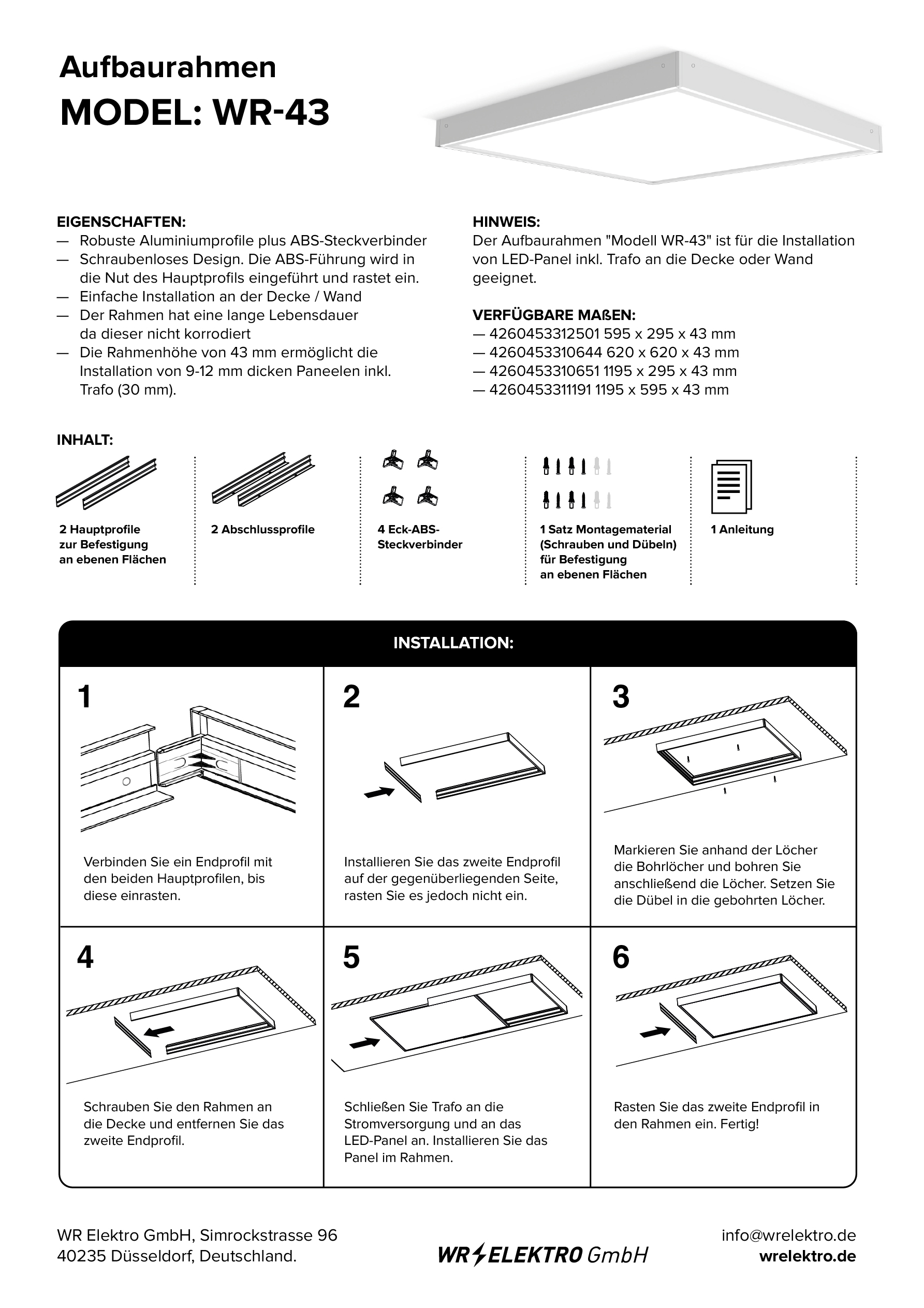 LED-Panels glänzen mit vielseitigen Einsatzmöglichkeiten die dank der flexiblen Montage gegeben sind. Eine stilvolle sowie sichere Montagevariante bietet die Installation im Aufbaurahmen. Dieser eignet sich ideal für die Montage von 1195x295x12mm LED-Panels inkl. Trafo oder Controller (bis 30mm Höhe) und wird an ebenen Decken sowie Wänden montiert.
